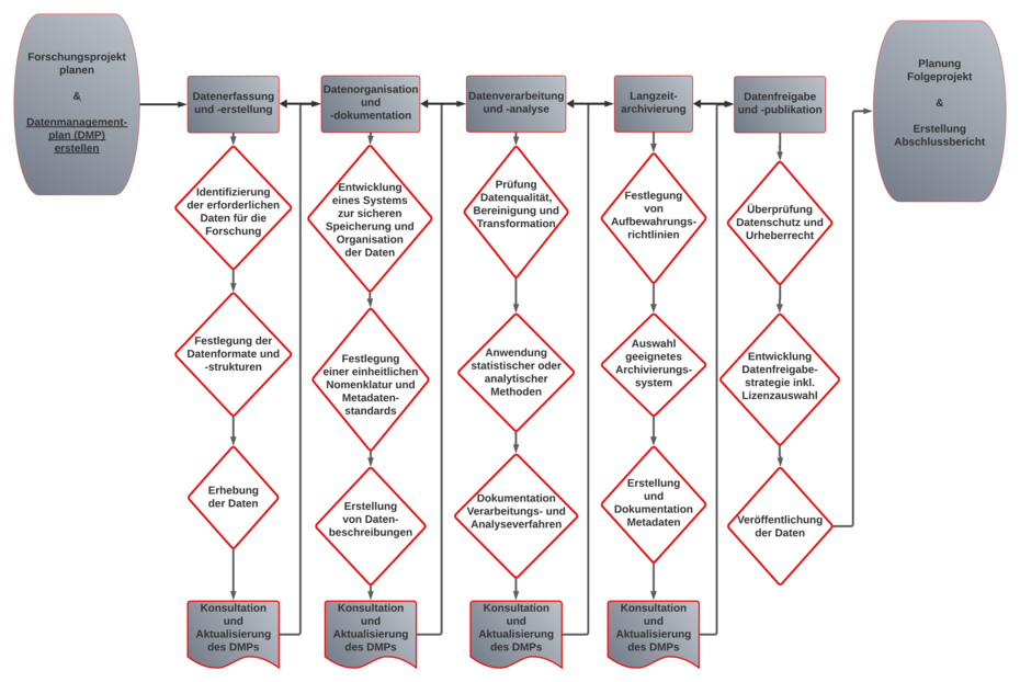 Forschungsdatenmanagement ermöglicht es Wissenschaftler:Innen optimal zu kooperieren und sehr schnell eigene Standards und Templates zu entwickeln. Dadurch wird compliance, reporting und Durchführung Ihrer Forschung effizienter und transparenter. Wir unterstützen Sie zum Beispiel bei der Erstellung eines Datenmanagementplans für Ihr Forschungsprojekt. Außerdem bieten wir Tools, Templates und Beratung zum Umgang mit Forschungsdaten in allen Phasen des Forschungsprozesses an: fdm(at)th-luebeck.de