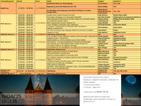 Nächste NightOfAI (NiOAI'24): 14.11.2024, ab 17:00 Uhr im Bauforum der Technischen Hochschule Lübeck.