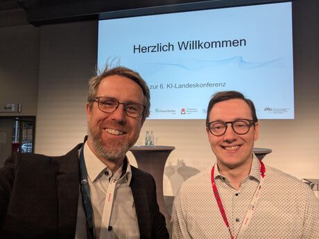André Drews und Niklas Beuter halten Vorträge zu KI in der Logistik, dessen Potential und Herausforderungen.