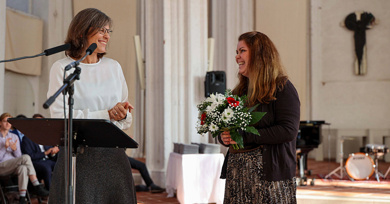 Pastorin Lilly Schaack ermutigt die Absolvent*innen: Stellen Sie Ihr Licht nicht unter den Scheffel, vergraben Sie Ihre Talente nicht, sondern zeigen Sie, was Sie in Lübeck gelernt haben.