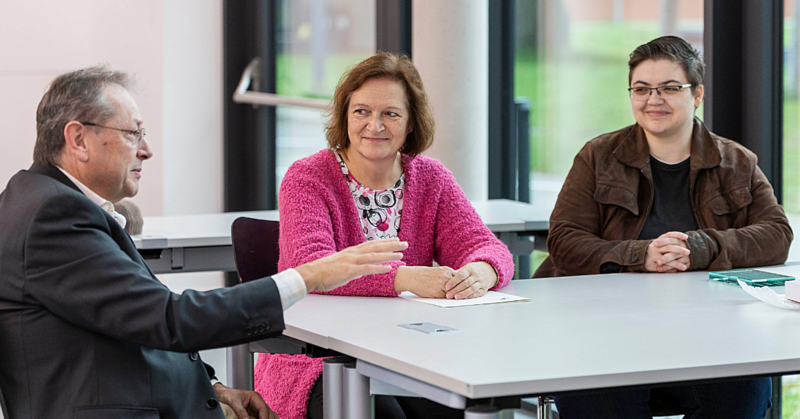 Prof. Manfred Rößle, Meike Mohr-Pape und Olivia Golms im Gespräch. Foto: TH Lübeck