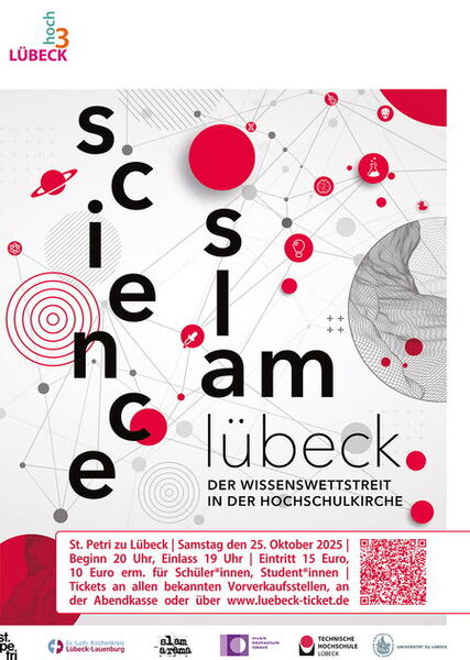 Können Forschungsergebnisse unter donnerndem Applaus präsentiert werden? Aber ja! Beim Science Slam am Sonnabend, dem 25. Oktober, um 20 Uhr, in St. Petri zu Lübeck, wird genau das passieren. Sechs junge Wissenschaftler*innen begeben sich auf die Bühne, begeistern mit ihren Themen ein wissensdurstiges Publikum und ringen mittels Überraschungen und Pointen um den begehrten Science-Slam-Pokal.