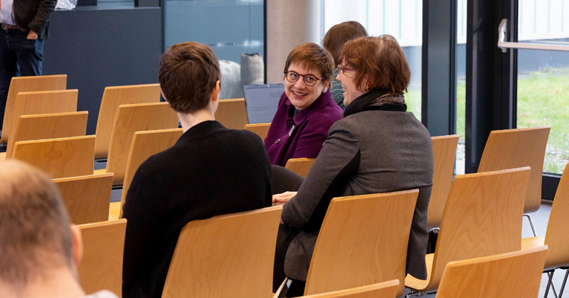 Wie KI in der beruflichen Bildung eingesetzt werden kann, war Thema beim Roundtable: KI in der Berufsausbildung im ÜBERGANGSHAUS. Ebenfalls im ÜBERGANGSHAUS beheimatet war die Live-Ausgabe des Podcasts Gedankensprünge von Lübeck hoch 3. Die Moderatorin Johanna Helbing diskutierte die Frage Wie prägt KI unsere Wissenswelt? mit ihren Gästen Roman Spendler (Universität zu Lübeck), Sebastian Hobert (TH Lübeck) und Kris Kuldkepp (Musikhochschule Lübeck).