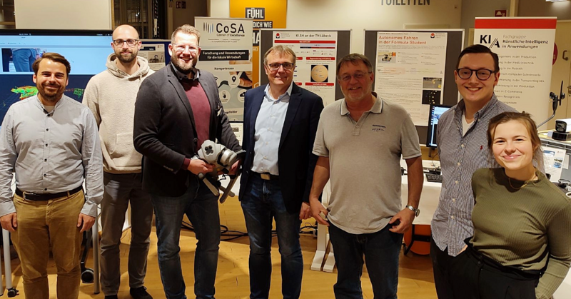 Mitten im Herzen von Lübeck konnten Unternehmensvertreter*innen, Schüler*innen und Wissbegierige jeden Alters im ÜBERGANGSHAUS bei der Ausstellung Lübecker KI-Erlebnistage erleben, was auf dem Hanse Innovation Campus Lübeck geforscht wird. Expert*innen vom CoSA der TH Lübeck zeigten diverse KI-Projekte, Demonstratoren und informierten über das Thema KI-gestützte Qualitätsprüfung in der Produktion für Kleinere und Mittlere Unternehmen (KMU). Außerdem konnten sie sich bei Annika Dietel und den Studienlotsen über die Studienangebote der TH Lübeck informieren.