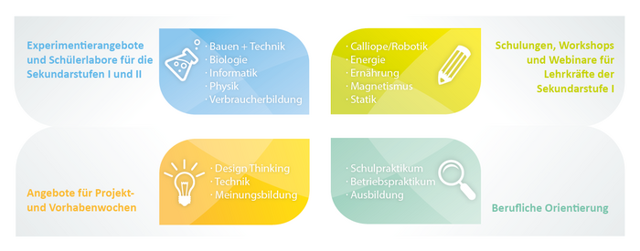 Ob Projekttage, Vorhabenwochen oder Schulpraktika – wir bieten praxisnahe Programme in den Bereichen Technik, Naturwissenschaften und Medizin, die Neugier wecken, Wissen vertiefen und Perspektiven für die Berufs- oder Studienwahl eröffnen.