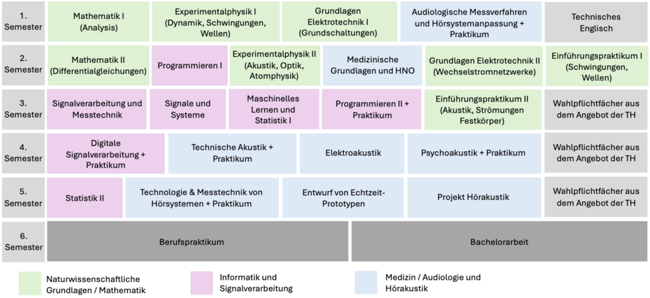 Modulbezeichnung Abkürzung ECTS SWS Modul Mathematik II Mathematik II (Differentialgleichungen) MA II 8 8 Modul Programmieren (Teil I) Programmieren I MLAB I 4 4 Modul Physik I (Teil I) Einführungspraktikum I (Schwingungen, Wellen) EXW L 1 1 Modul Physik II (Teil II) Experimentalphysik II (Akustik, Optik, Atom- und Festkörperphysik) EPH II 5 4 Modul Elektrotechnik (Teil II) Grundlagen Elektrotechnik II (Wechselstromnetzwerke) GE I 5 3 Modul Medizinische Grundlagen und HNO Physiologie des auditorischen Systems PAS 3 2 Ausgewählte Themen der HNO und audiologischen Diagnostik ATHD 4 3 Studienverlauf 3. Semester